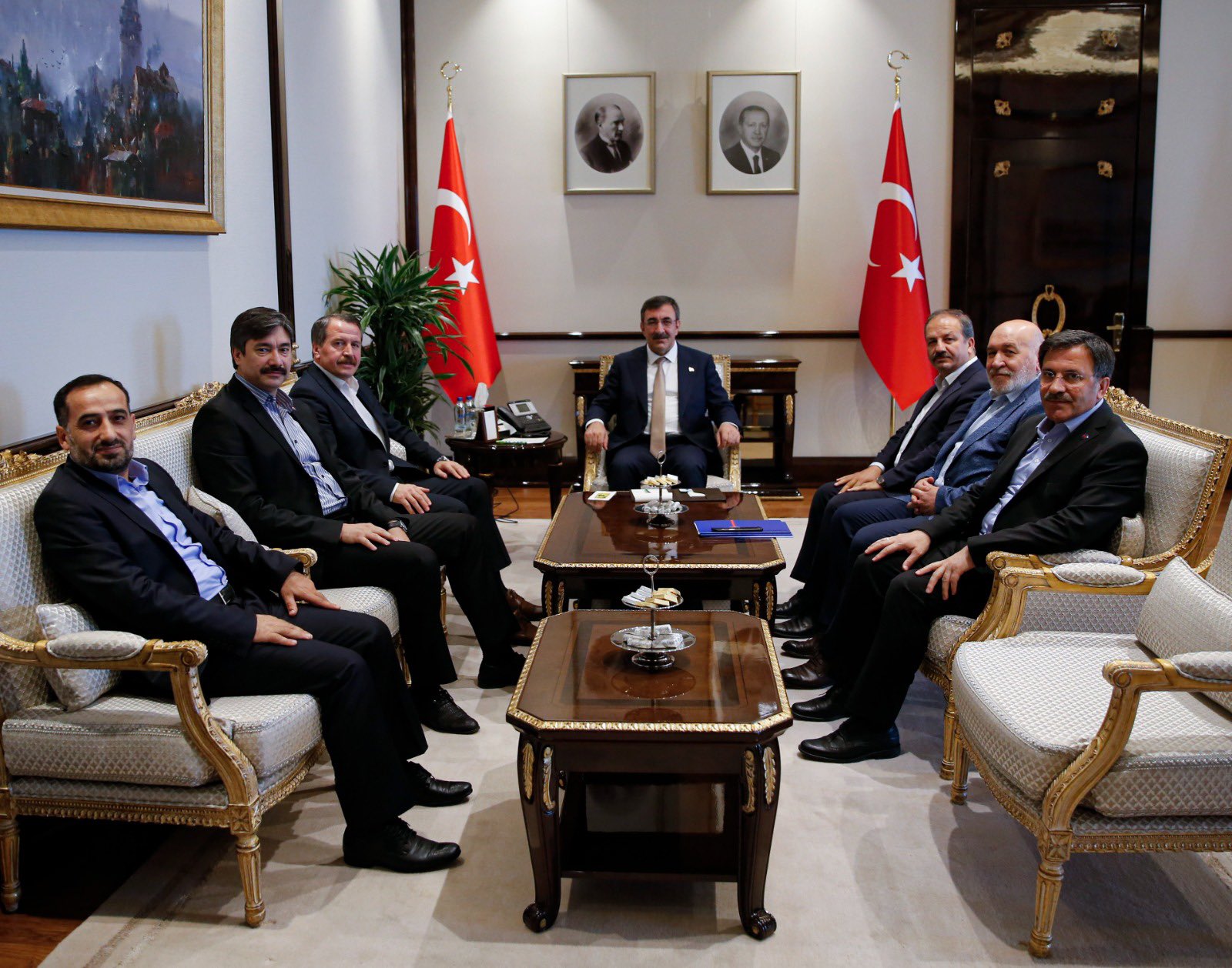 Memur-Sen Genel Başkanı Ali Yalçın ve Yönetim Kurulu üyeleri Mahmut Faruk Doğan, Levent Uslu, Hacı Bayram Tonbul, Ali Yıldız ve Ramazan Çakırcı, Cumhurbaşkanı Yardımcısı Cevdet Yılmaz'ı ziyaret etti.