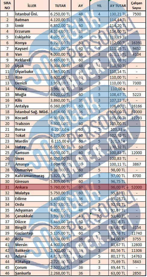 Banka promosyonu alan illeri sıraladığımız listemizde Ankara aylık 96 liralık promosyon ücreti ile Türkiye'de en yüksek promosyon ücreti alan 31. il oldu. İhalenin sonuçlandığı gün aylık kişi başı 95 lira olan banka promosyon ücreti, yapılan görüşmeler sonucunda personel başına 1 Liralık bir artışla 96 liraya çıkartılmış oldu.
