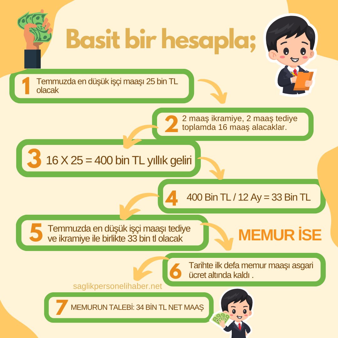 Memurlar, yaşam standartlarını koruyabilmek ve geçimlerini sağlamak için yoksulluk sınırı üzerinde bir maaş talep ediyor. Bu talepler, asgari ücret ve kamu işçilerinin maaşlarının memur maaşlarına kıyasla daha yüksek olmasından kaynaklanıyor. Temmuz zammıyla kamu işçisi temizlik personelinin aylık maaşı 30 bin lirayı bulacak.