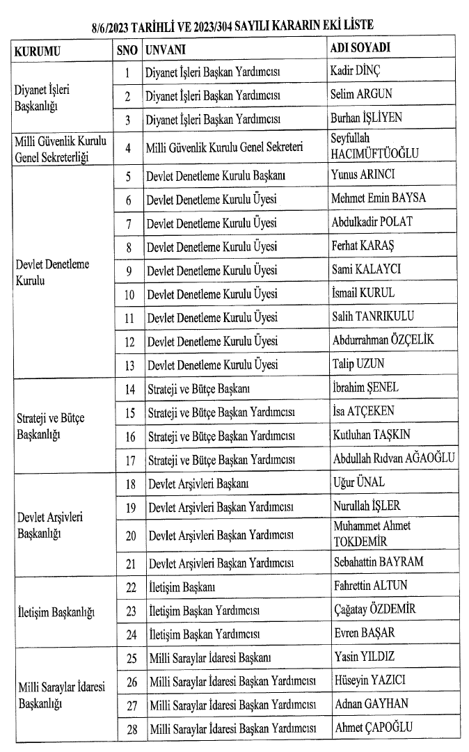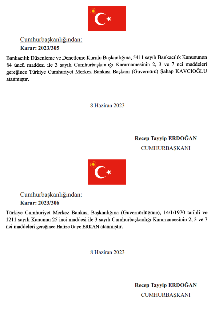 Merkez Bankası eski Başkanı Şahap Kavcıoğlu, Bankacılık Düzenleme ve Denetleme Kurumu (BDDK) başkanı olarak atanırken, Fahrettin Altun ise İletişim Başkanlığı görevine yeniden getirildi.