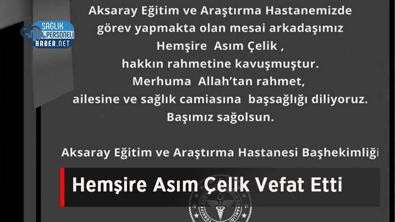 Hastanede görev yapan Hemşire Asım Çelik’in hayatını kaybettiği açıklandı.