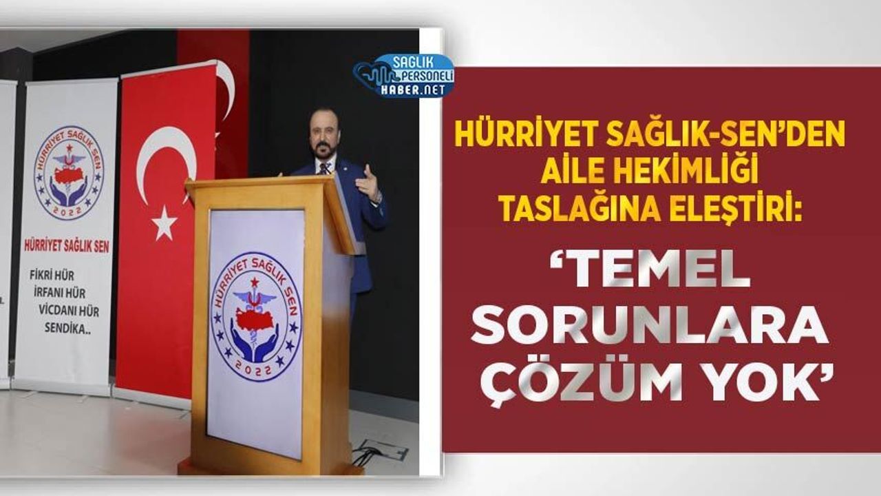 Hürriyet Sağlık-Sen, aile hekimliği sisteminde şekli değil, doğrudan sorunları çözen kapsamlı bir reforma ihtiyaç olduğunu savunarak, aksi halde mevcut taslağın sahadaki sorunları büyüterek sürdüreceği görüşünü paylaştı.