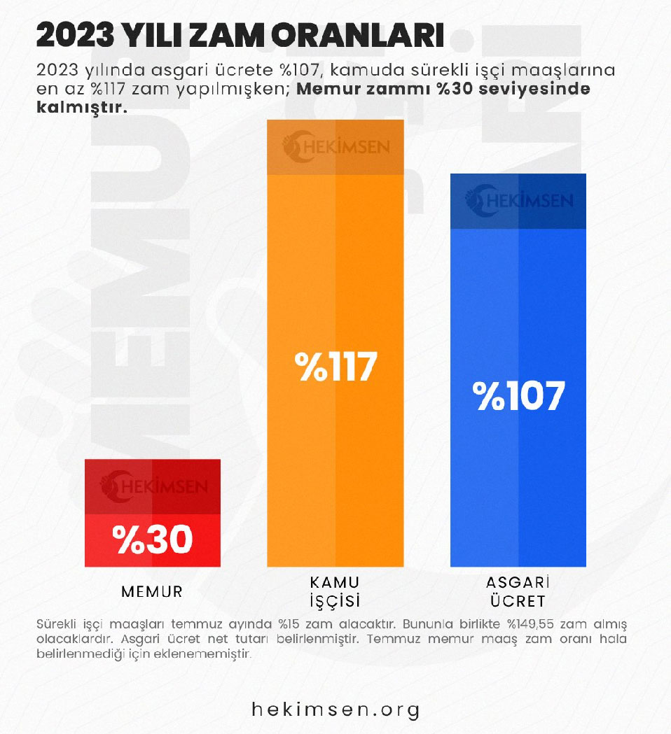 Hekim ve Diğer Sağlık Çalışanları Kamu Sağlık ve Sosyal Hizmetler Sendikası, 2023 yılında memurların, kamu işçilerinin ve asgari ücretlilerin aldığı zam miktarlarını hesapladı.