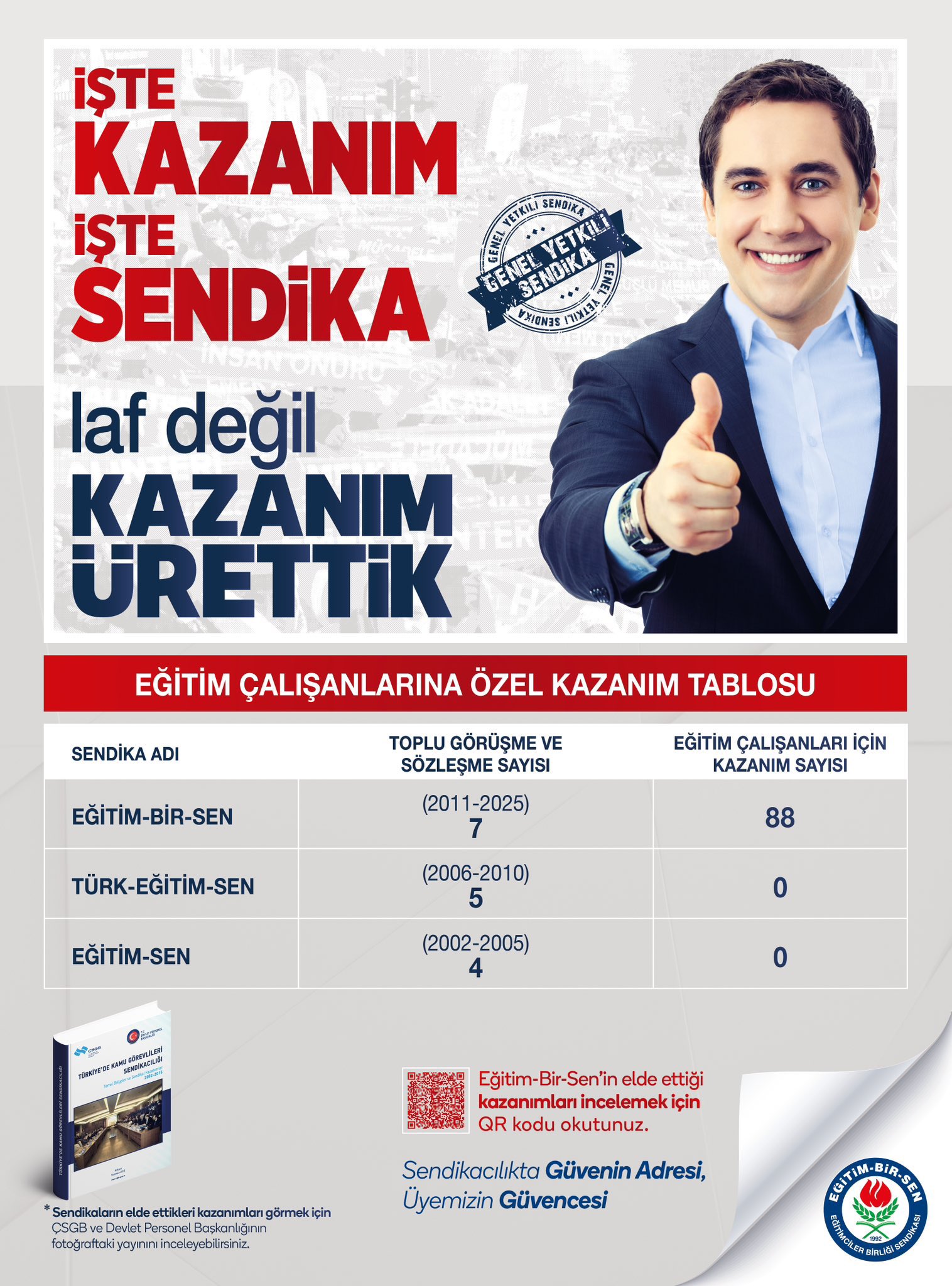 Yalçın, Eğitim-Bir-Sen’in kamu çalışanları için attığı her adımın bilinçli, kararlı ve emek temelli olduğunu vurgulayarak, toplu sözleşme masasında elde edilen her kazanımın sendikanın alın teri olduğunu söyledi. “Bu kazanımlar bizim imzamız, emeğimiz ve yer aldığımız masanın sonucudur. Bunların itibarsızlaştırılmasına kesinlikle müsaade etmeyeceğiz” dedi.
