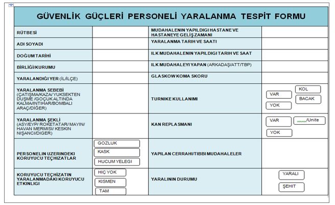 TÜRK SİLAHLI KUVVETLERİ PERSONELİ YARALANMA TESPİT FORMU